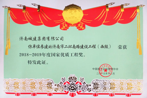 濟南市二環南路建設工程(西段)榮獲“2018-2019年度國家優質工程獎”